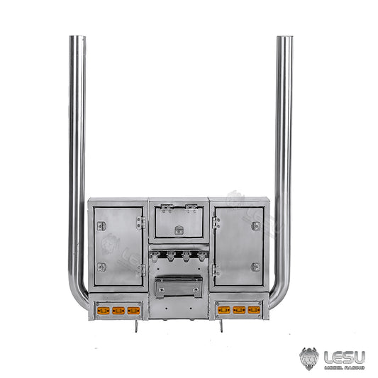 LESU Metal Smoke Exhaust Pipe Elevator Fixed Electronic Wire Rack Spotlight Toolbox for 1/14 FH12 Tractor Truck Radio Control Cars
