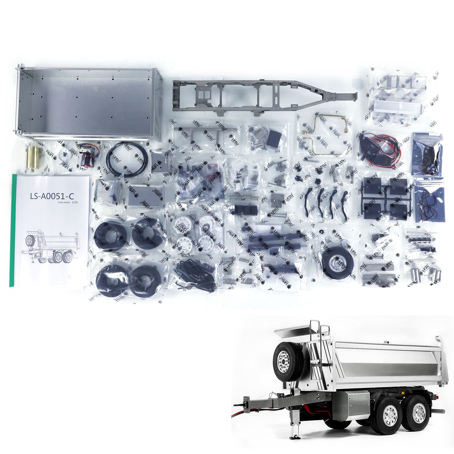 LESU 2-Axle Metal 1/14 RC Hydraulic Full Trailer Remote Control Self-dumping Truck Model DIY Car Optional Versions KIT