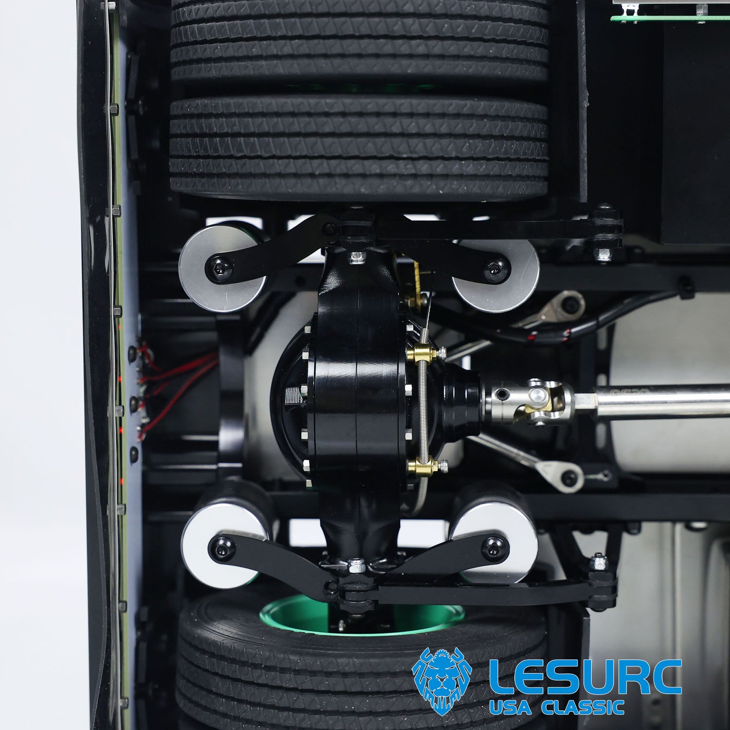 2. Axles: The truck utilizes LESU Q-9 series axles known for their robustness and high load-carrying capacity. They are also equipped with remote-controlled differential lock function, adding more excitement to your control experience.