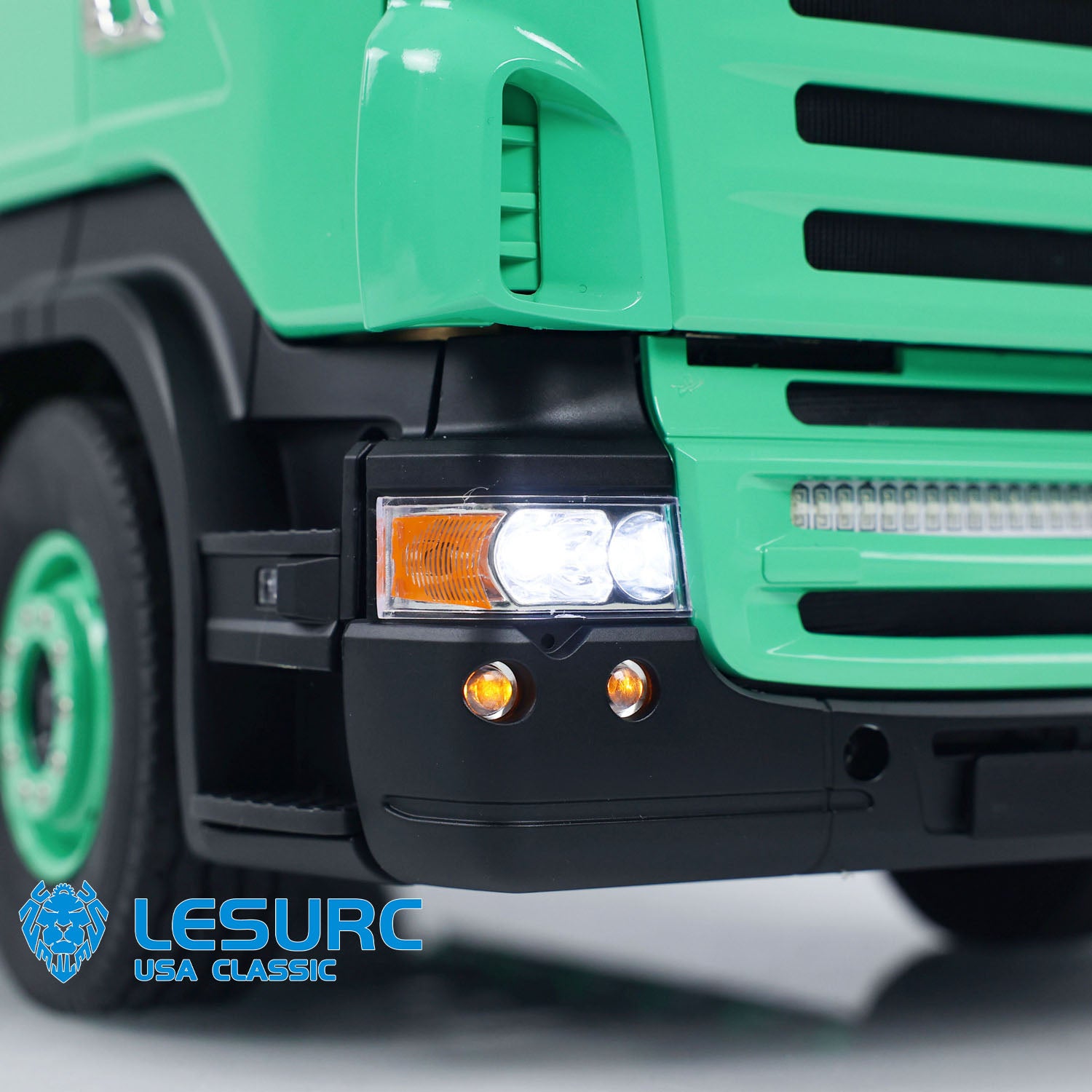 1. Sound and Light Systems: The tractor truck model is equipped with a sound system and lighting system, including top row lights and side marker lights, enhancing the realism of the model.