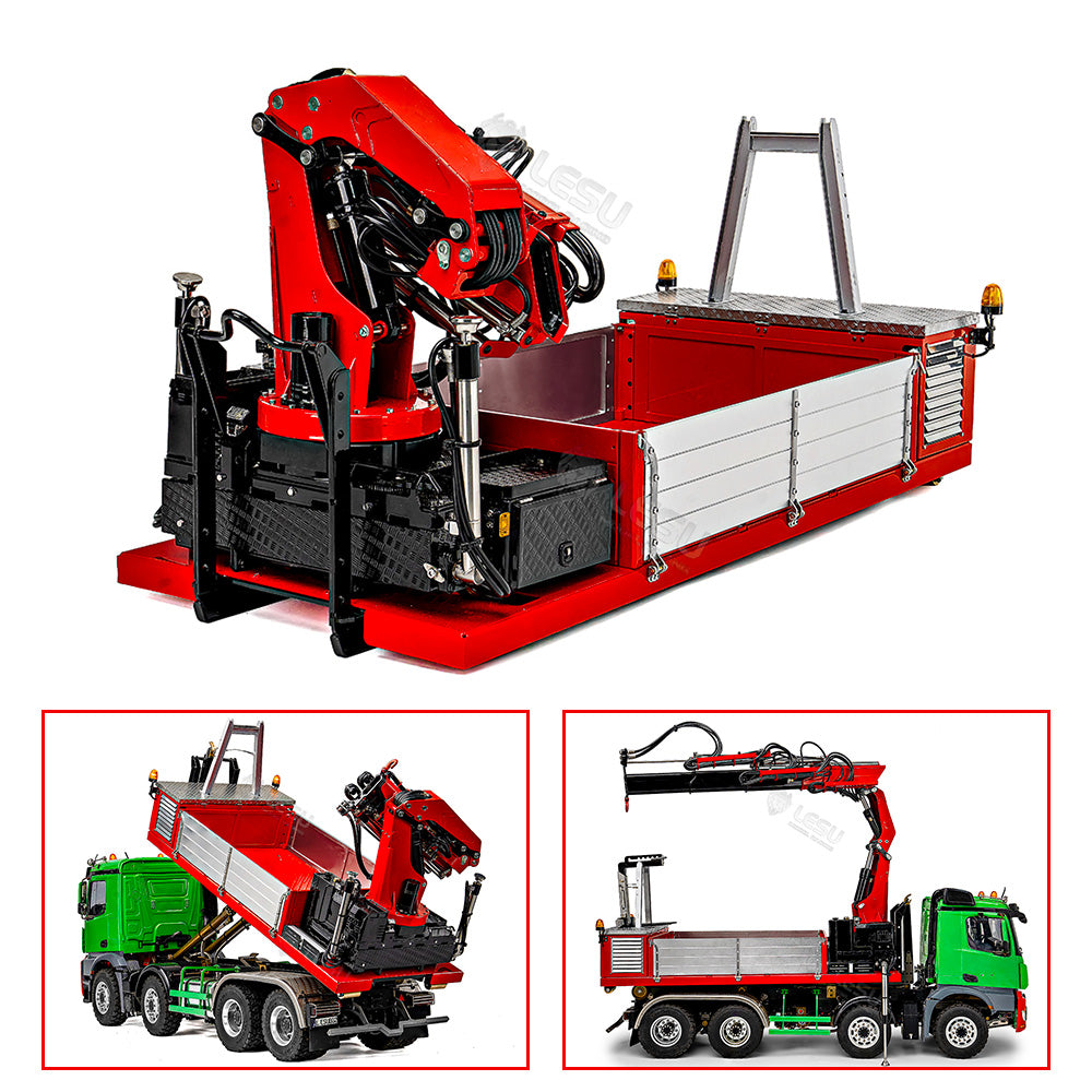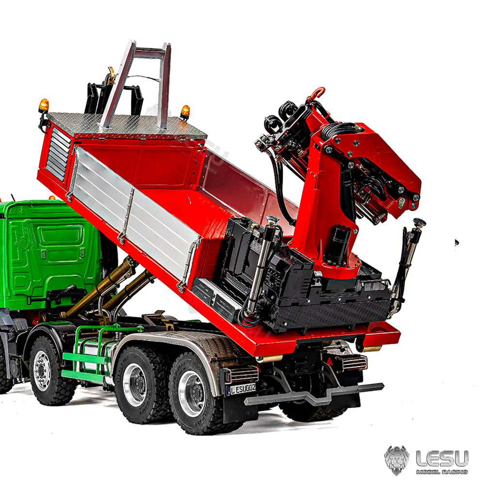 Metal Cargo Box Hydraulic Crane for LESU 1/14 Roll on Off Dumper Truck DIY Tipper Model Emulated Vehicle 7CH Valve Pump Lights