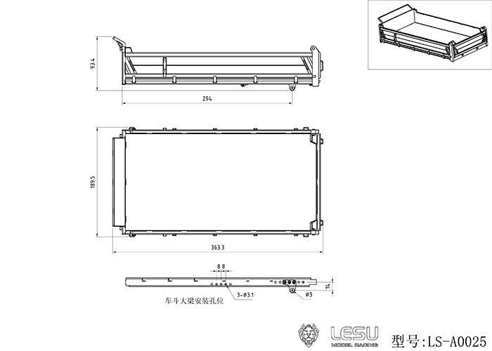LESU Metal Spare Part Car Hopper Bucket Box Suitable for 1/14 4*4 RC Dumper Radio Controlled 2Axle Truck DIY Vehicle Model