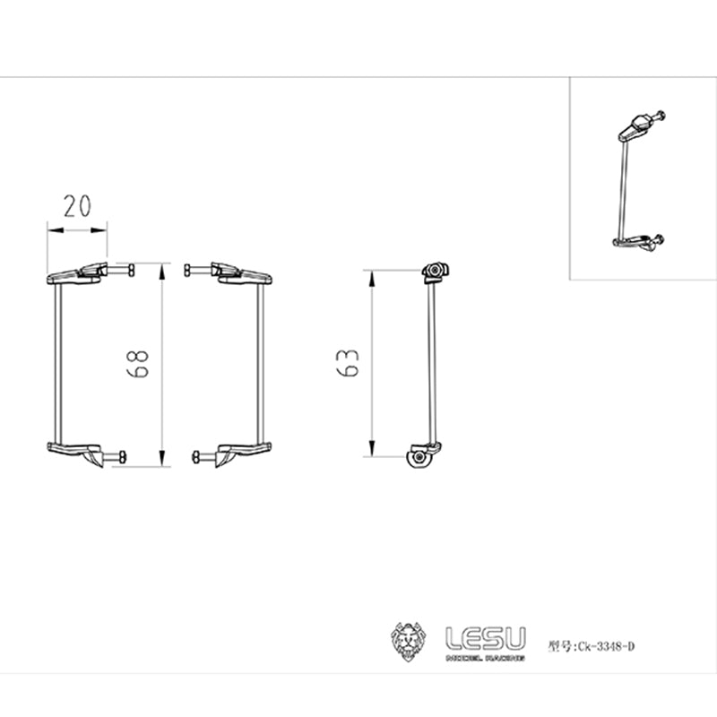 LESU Rearview Mirror Stand Metal Air Tank Rear Bumper Taillight for 1/14 DIY 3348 3363 RC Dumper Radio Control Tipper Truck