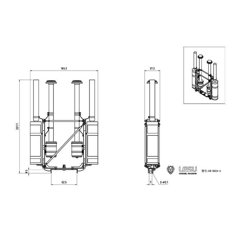 LESU Metal Spare Part Battery Compartment Front Bumper Exhaust Pipe Suitable for American Tractor Truck Cars DIY Accessory