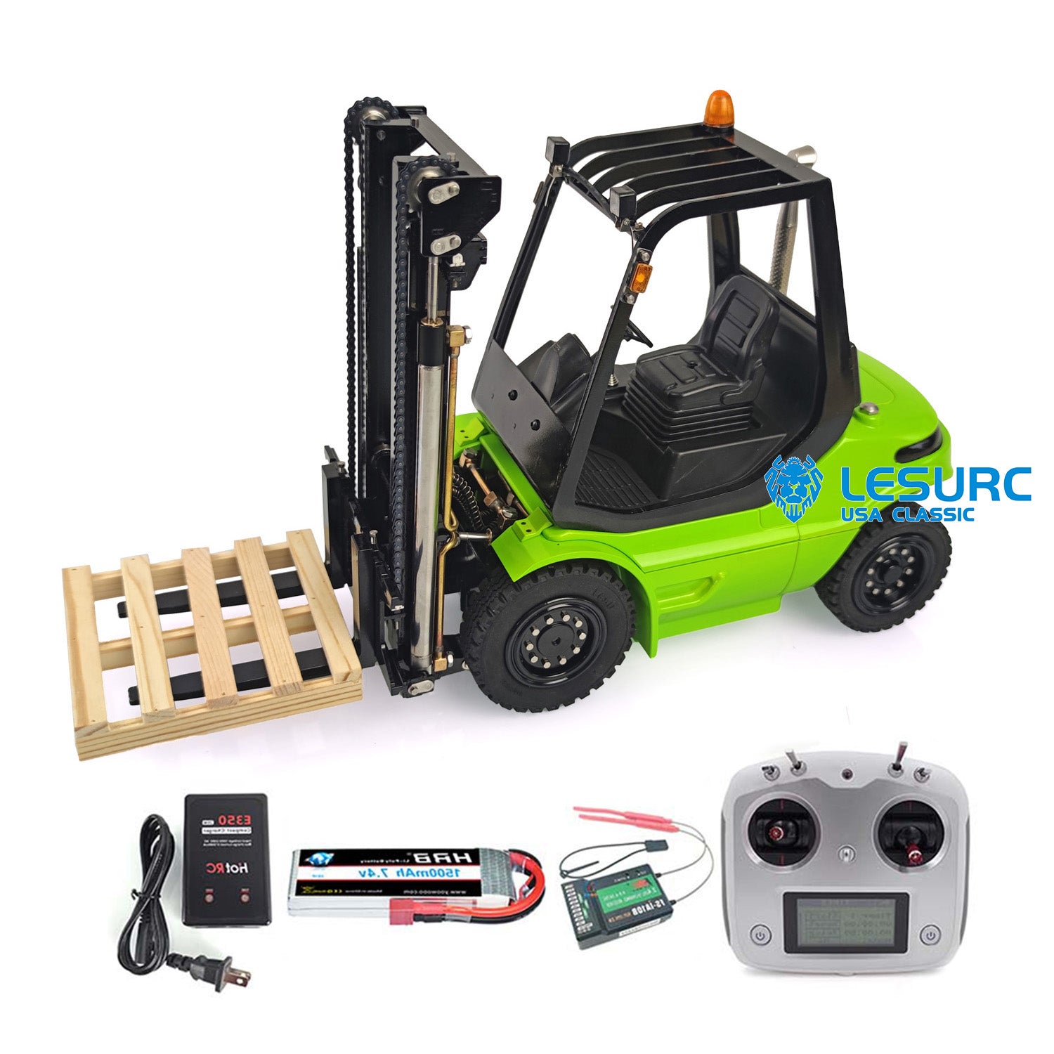 1/14 Scale LESU RC RTR Model Forklift Assembled Transfer Car Truck W/ Light Sound Motor Servo ESC Radio Charger Battery Driver