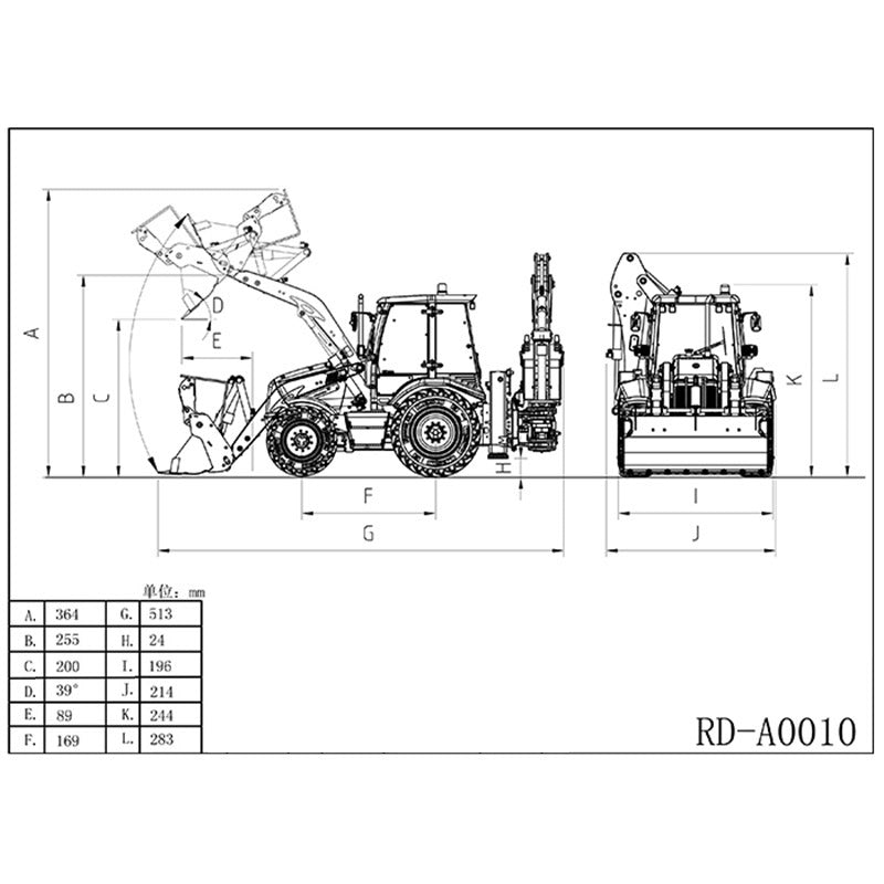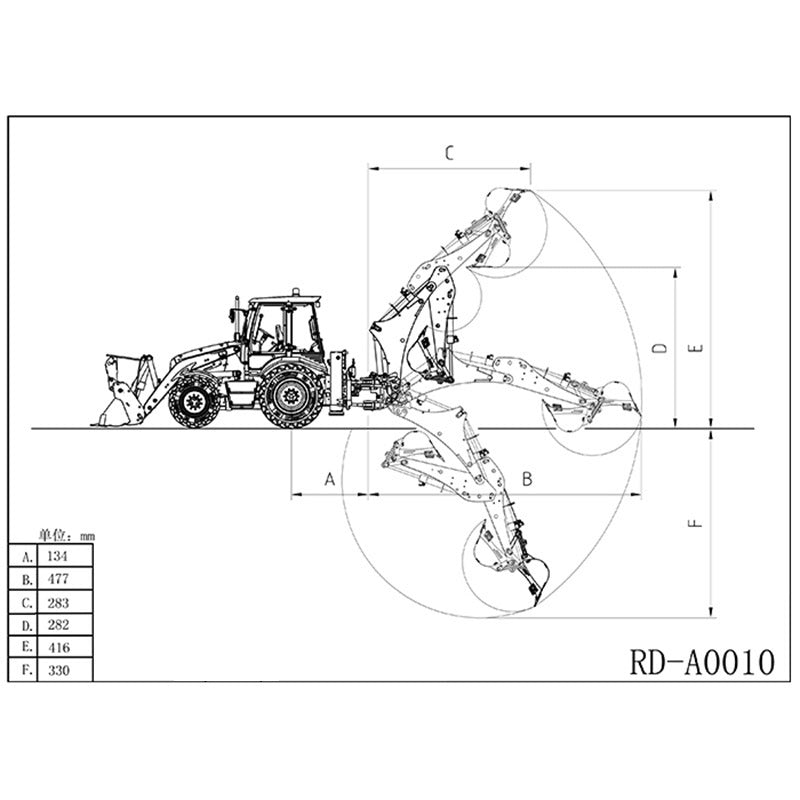 3. Front fork, hydraulic front shovel, hydraulic bucket, one machine with multiple functions; The rear digging arm is equipped with a digging assembly to move laterally, and the digging range is larger.