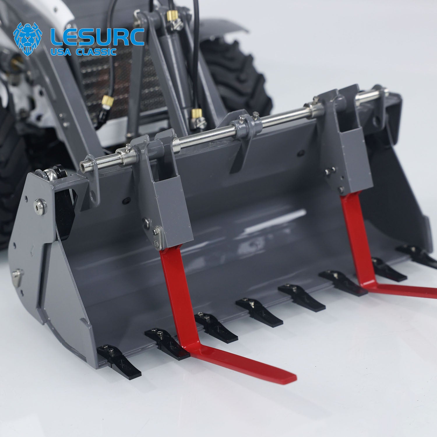 2. CNC metal shell; The front shovel is equipped with a stainless steel bucket, and the bucket has a hydraulic opening and closing function.
