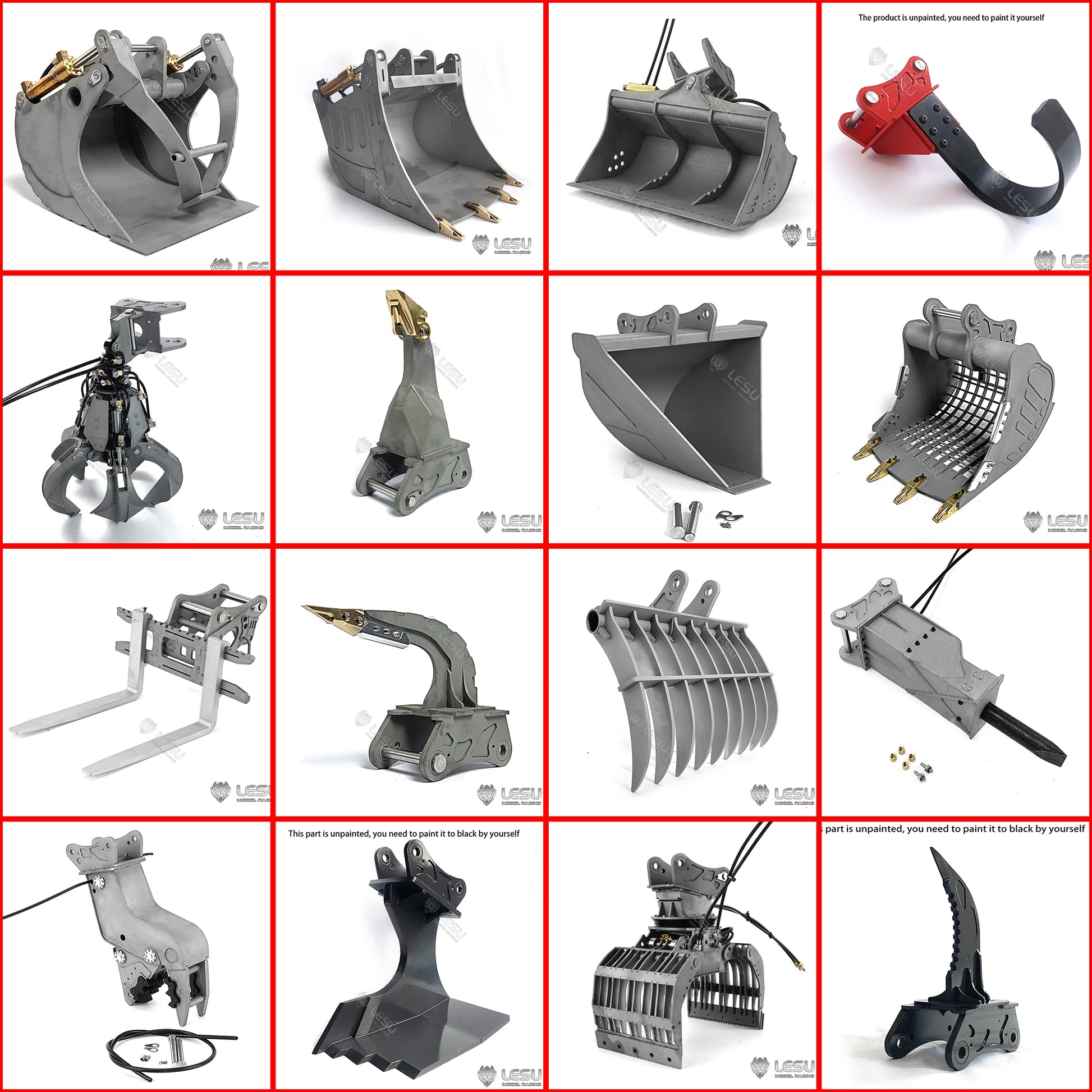 LESU Metal Grab Hammer Hydraulic Tiltable Bucket Ripper Spare Parts For 1/14 RC Aoue ET35 Hydraulic RC Excavator B0006 Model