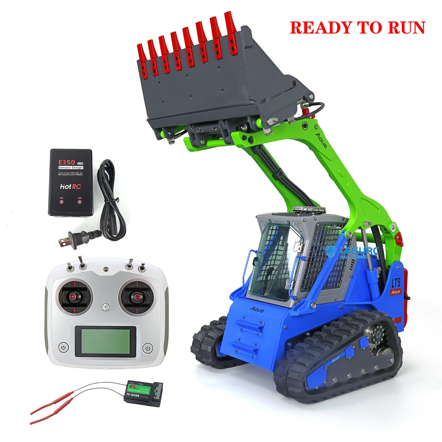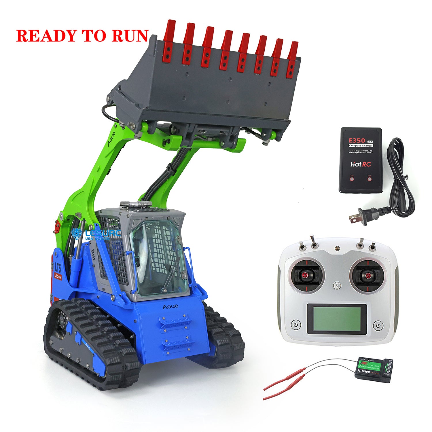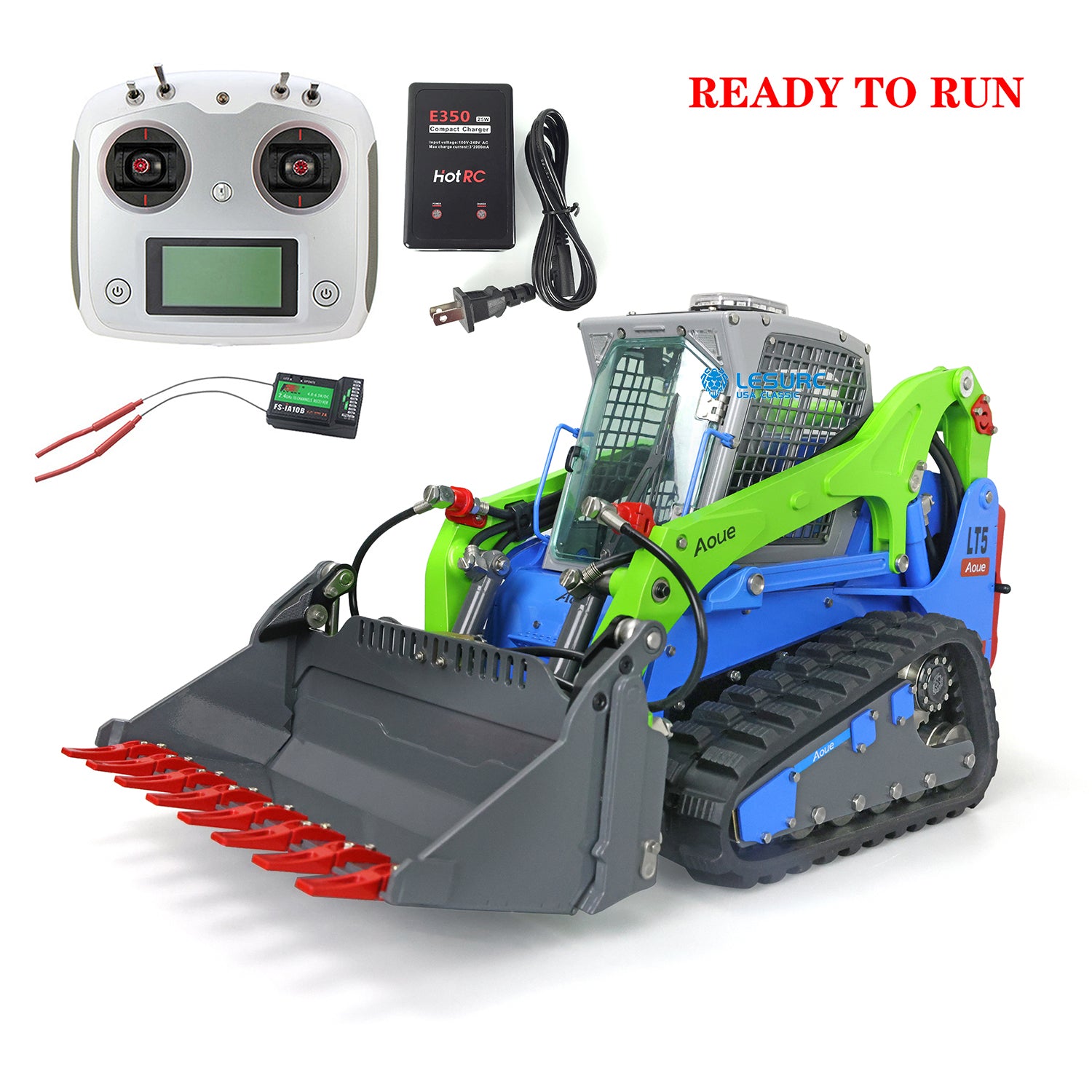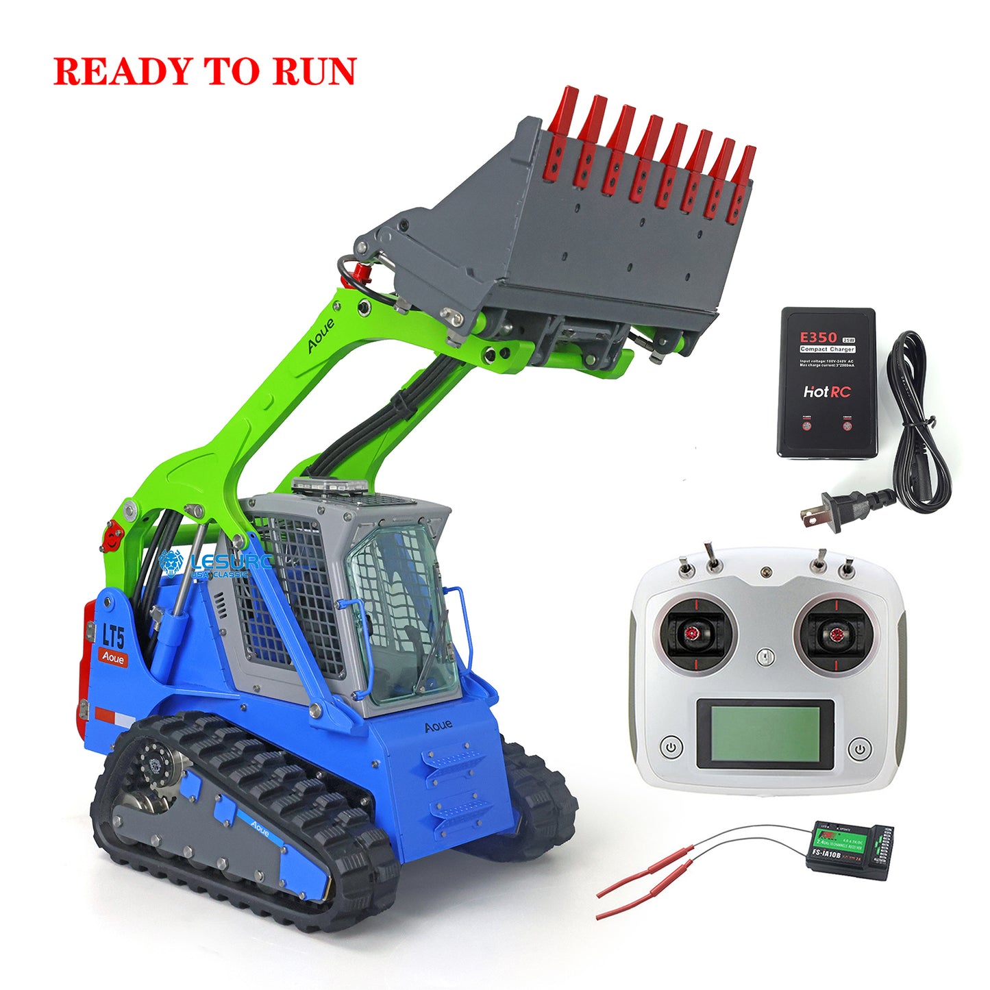 LESU 1/14 Scale Aoue LT5 Ready To Run Hydraulic Tracked Skid-Steer Remote Controlled Loader I6S Controller Rotating light Battery